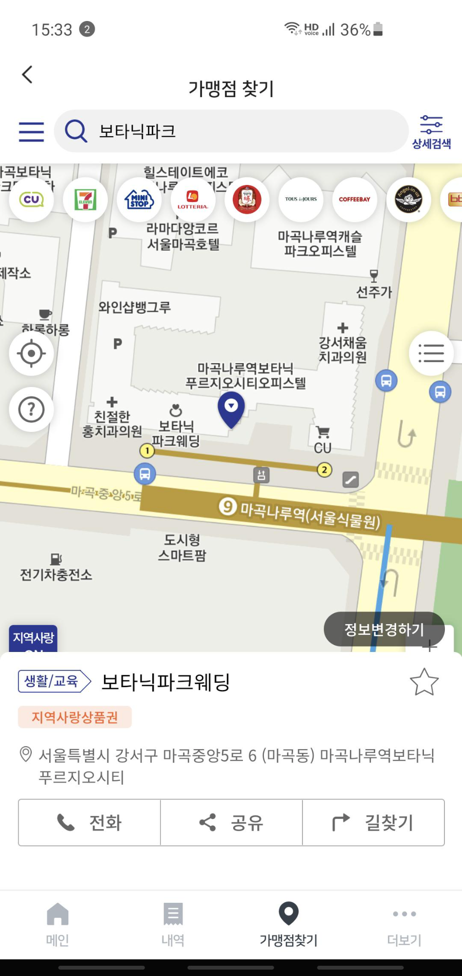 2. 제로페이 가맹점인 경우, 해당 업체 소재지(위치) 확인