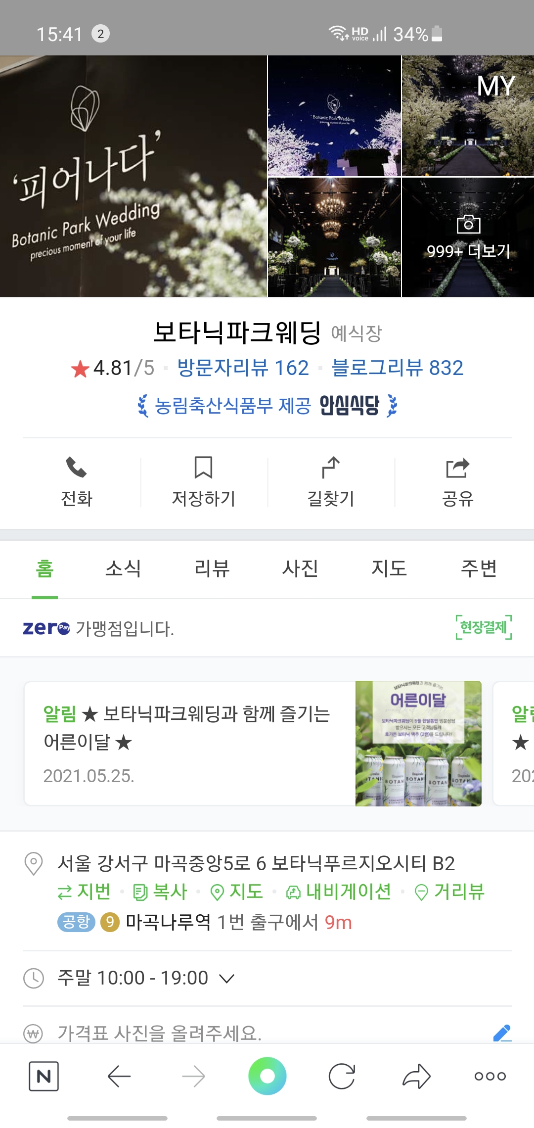 예를 들어 저희가 예식을 진행할 '보타닉파크 웨딩'의 경우 네이버 혹은 '비플 제로 페이'에서 검색 시 '제로 페이 가맹점'이라고 아래와 같이 검색됩니다. 이러한 경우 지역사랑상품권 (서울 사랑 상품권)을 사용할 수 있습니다. 해당 업체에서 사용하려면 서울강서사랑상품권을 구매하여 사용하면 되는 것이죠.