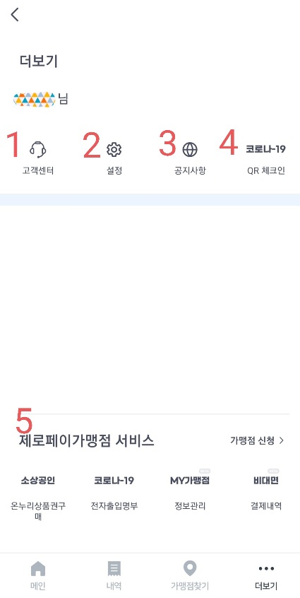 5. '제로 페이 가맹점' 서비스를 모아둔 기능으로 소비자 입장에서는 사용할 수 없는 기능