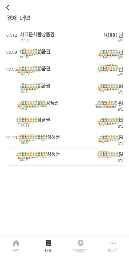 7. 내역 버튼으로 상품권 구매 내역을 확인할 수 있음