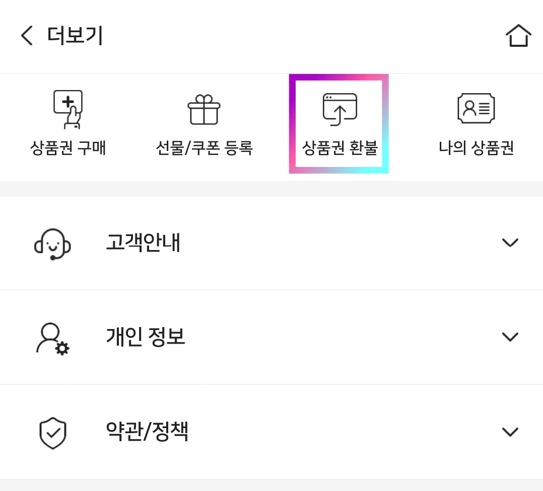 STEP 4. 아래 이미지를 참고하여 '상품권 환불' 버튼을 클릭합니다.