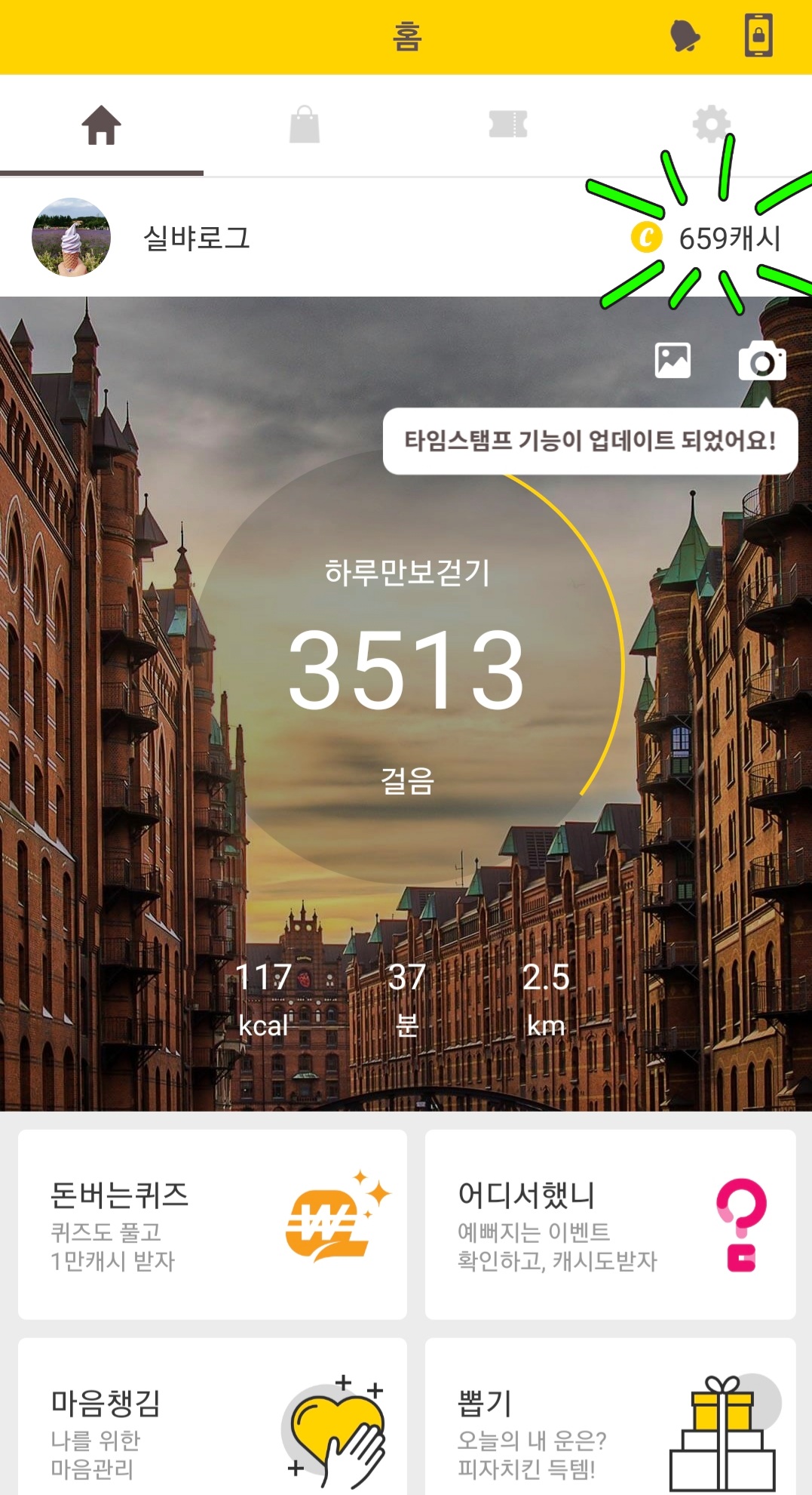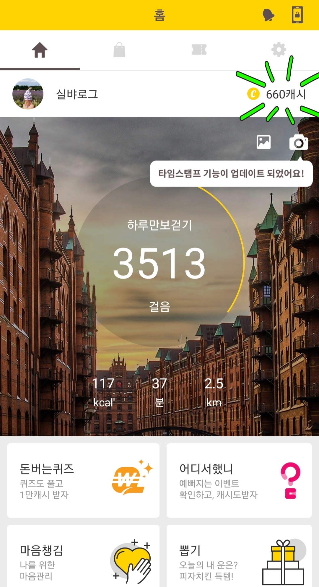 캐시워크 - 포인트 적립 방법 - 걸음, 만보기 편
