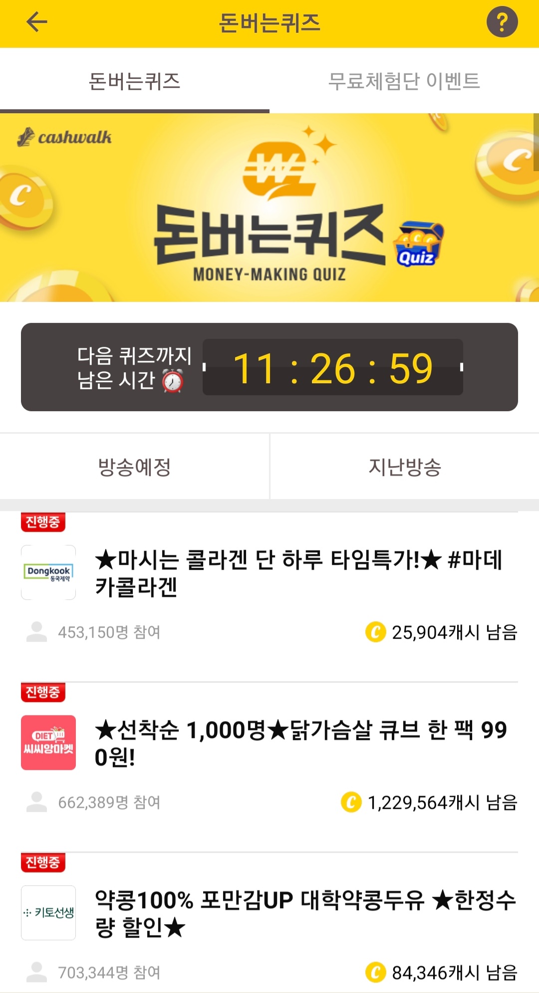 STEP 2. 화면 하단에 위치한 '돈 버는 퀴즈' 버튼을 클릭합니다.