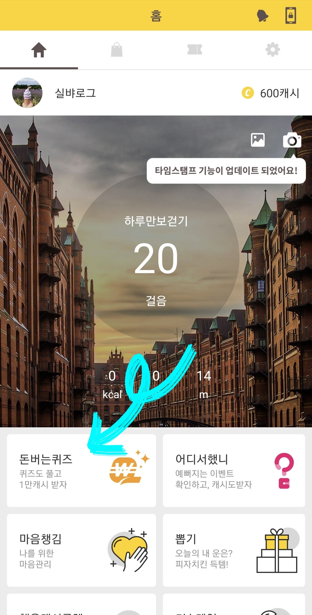 캐시워크 - 포인트 적립 방법 - 걸음, 만보기 편