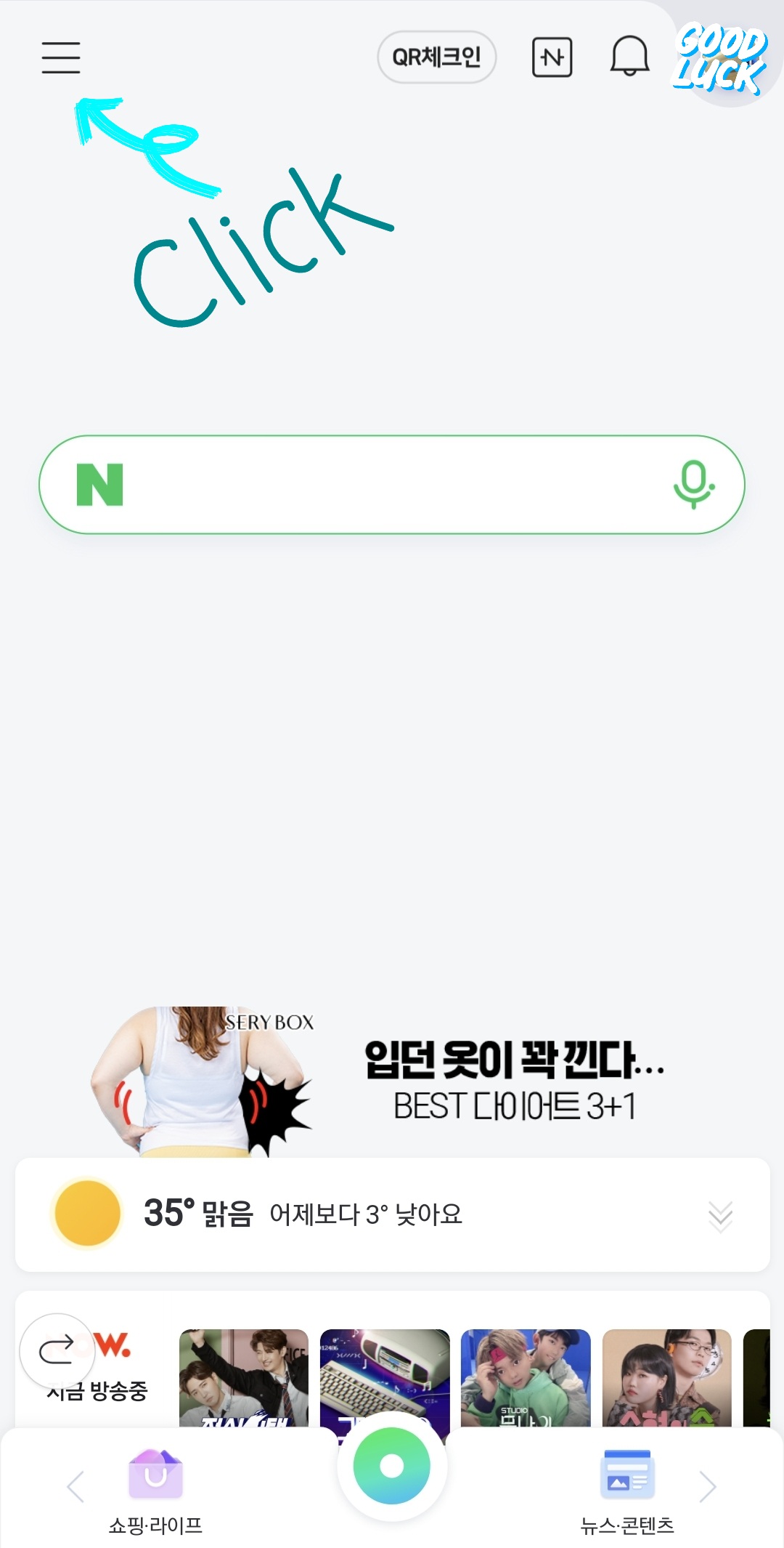 STEP 1. '네이버(NAVER)' 앱을 클릭하여 실행합니다.